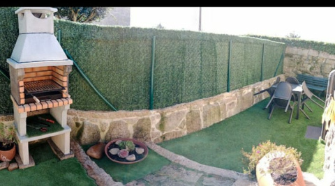 En el exterior cuenta con un pequeño jardín con barbacoa.